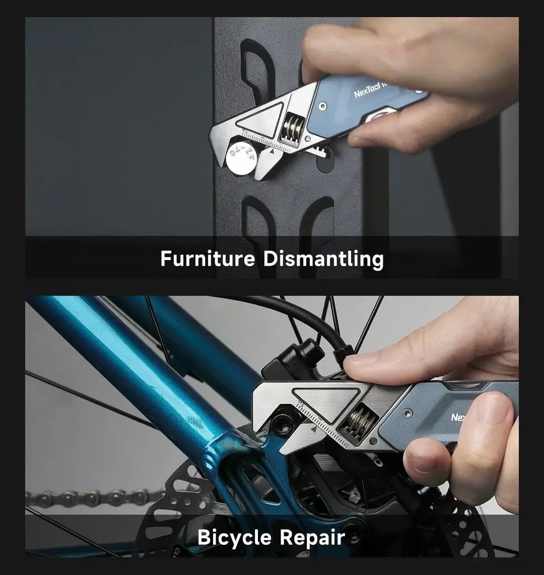3, Extended arm design : The main body is 114mm, while opening the two functional pieces at the end can also be extended by 33mm, a small tool can be of great use.(*Maximum force on the auxiliary handle is 50kg)